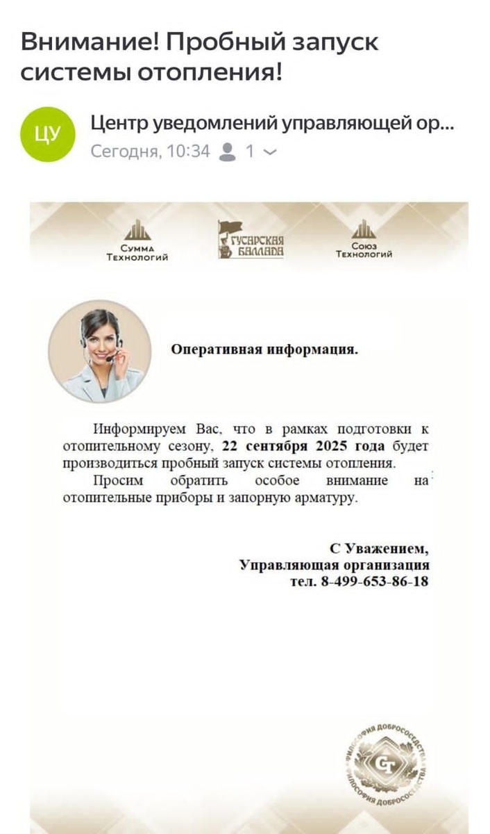 Пробный запуск отопления 22 сентября