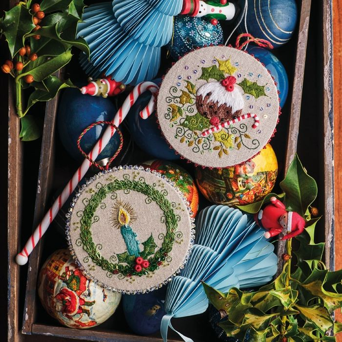 "Праздничное веселье" от Дженни Маквинни Одна из отличительных черт проектов Дженни Маквинни — её удивительная способность воплощать выбранную тему в жизнь посредством рукоделия. На протяжении многих лет Дженни очаровывала нас своими любимыми животными и причудливыми персонажами, настолько яркими, что они словно выпрыгивают из ткани, каждый со своим озорным очарованием и неотразимой индивидуальностью. Обладая редким даром превращать нити в истории, стежки Дженни столь же выразительны, как мазки кисти на картине. В своём последнем проекте «Праздничное веселье» Дженни вновь демонстрирует это волшебство, но на этот раз с изюминкой. Она взяла два культовых символа Рождества — сливовый пудинг и зажжённую свечу — и наполнила их такой теплотой и очарованием, что они кажутся почти живыми. Легко представить себе пудинг, блестящий от соуса и украшенный веточкой падуба, готовый хихикать от восторга. Свеча, окруженная праздничным венком, ярко сияет, и ее мерцающий свет словно отражается от ткани,
