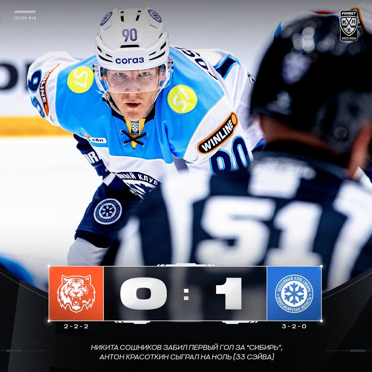 ❄️ Гол Сошникова и «сухарь» Красоткина принесли «Сибири» вторую победу над «Амуром» за три дня!