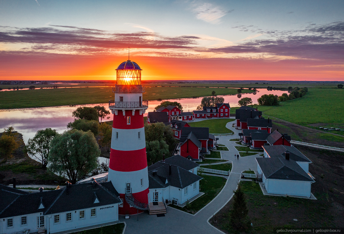 Рязанская область, п. Шумашь Маленький живописный остров с маяком и атмосферными домиками в норвежском стиле, расположенными на берегу озера «Старая Тишь», является гостиничным комплексом. Здесь можно просто погулять, покататься на лодке, порыбачить или же остановиться на ночь.