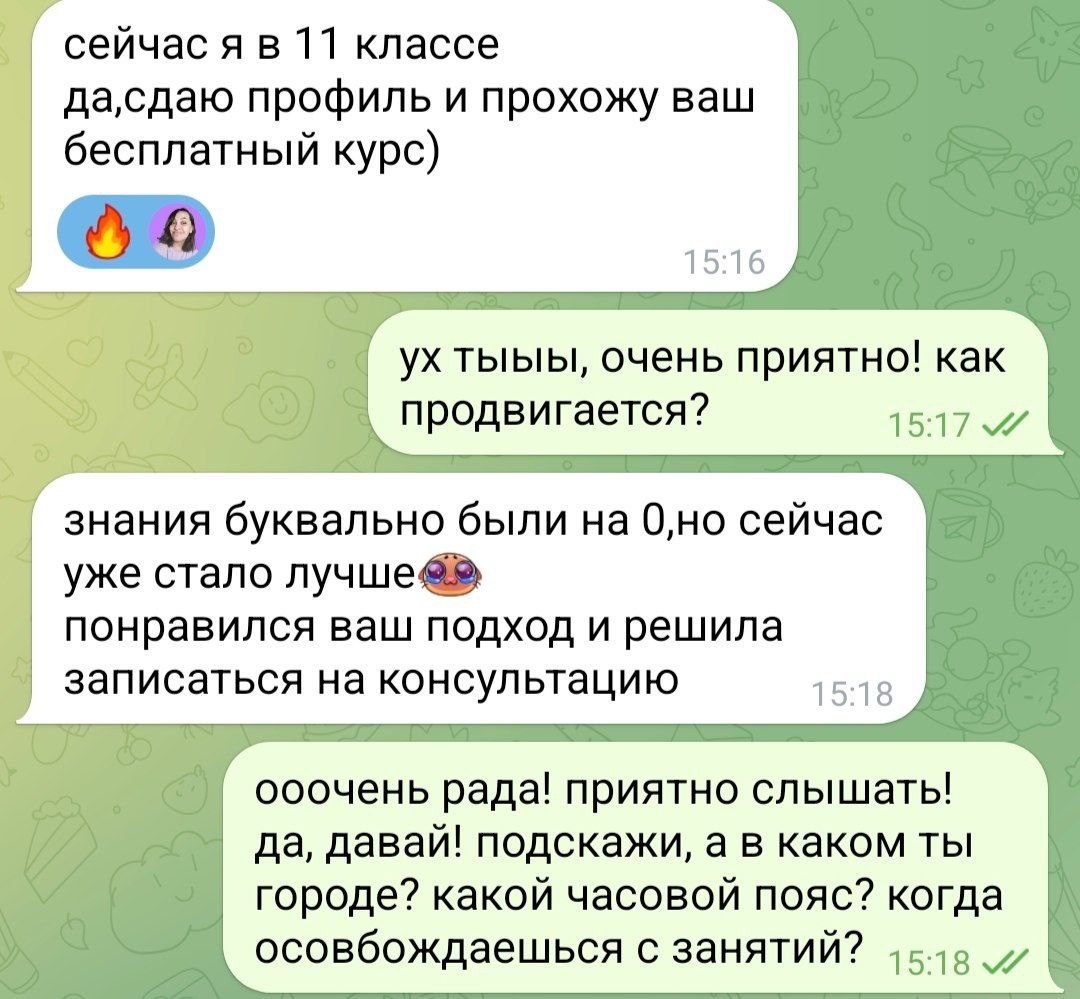 Очень приятно, что бесплатный курс помогает такому числу людей 🥹💾 Для меня это большой мотивационный пиночек продолжать работать дальше и стараться для вас еще больше Также можно прийти на бесплатную консультацию (до 28.09) лично ко мне, чтобы задать любые вопросы и составить план вашей подготовки Кому актуально напишите — @manager_LanaMath
