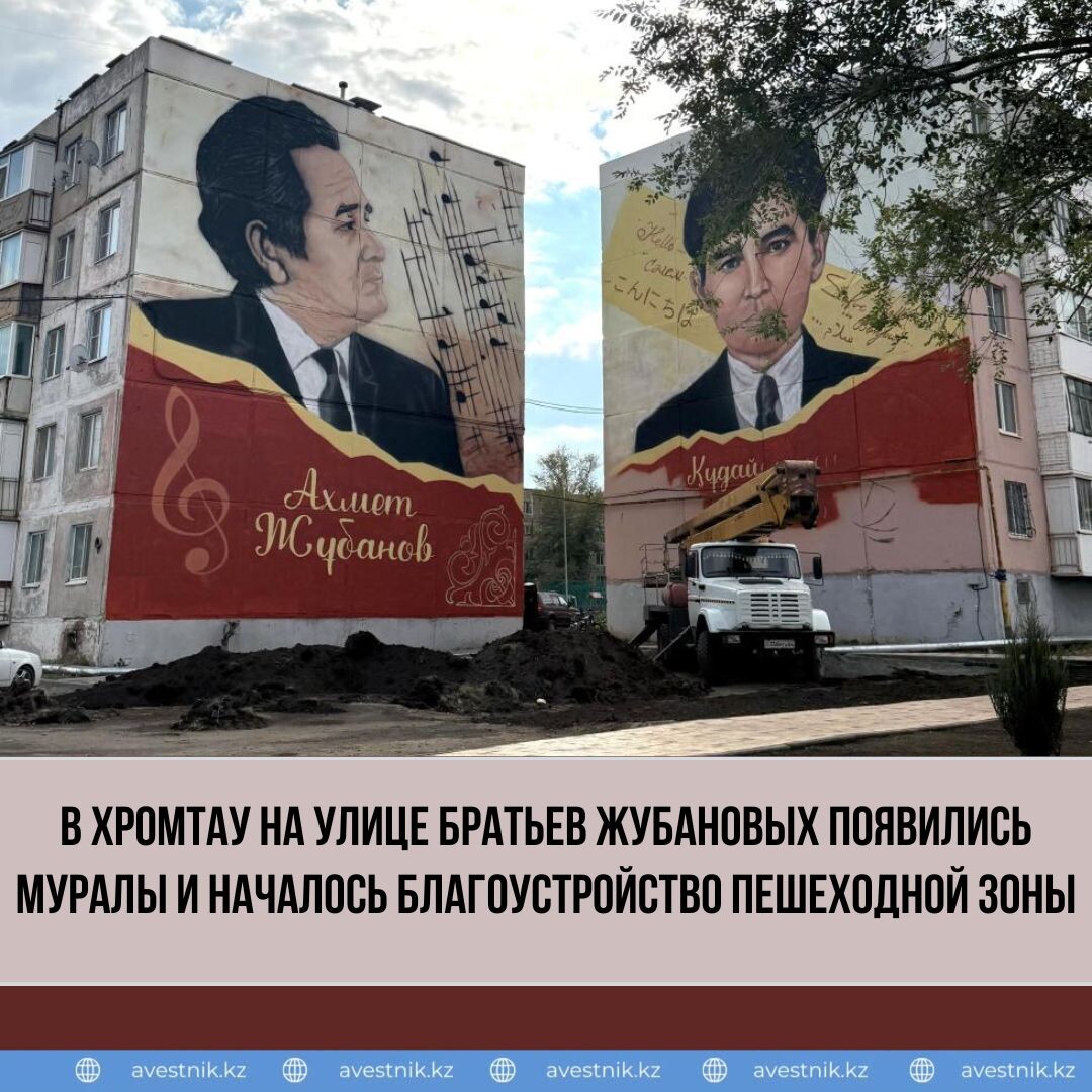✅ В Хромтау на улице Братьев Жубановых создали муралы в честь знаменитого композитора А. Жубанова и выдающегося учёного-тюрколога К. Жубанова. 🎨 В Хромтау в рамках проекта «Tugan Kala» ведутся работы по капитальному ремонту пешеходной зоны. Помимо обновления дорожного покрытия и установки современной уличной мебели, ведутся работы по озеленению территории и созданию новых спортивных и игровых площадок, что значительно улучшит комфорт и безопасность для жителей и гостей города. 🌳 Асхат Шахаров в рамках акции «Таза Қазақстан» принял участие в озеленении улицы, посадив там яблоню. 💬 Глава региона отметил важность таких инициатив для повышения качества жизни жителей и подчеркнул, что благоустроенные улицы и парки делают город более уютным и привлекательным для всех. Проект реализуется при поддержке компании ERG. 🌱 «Благоустройство улиц и создание зелёных зон – это важный вклад в комфорт и здоровье наших жителей. Посадка деревьев в рамках акции «Таза Қазақстан» – пример того, как в
