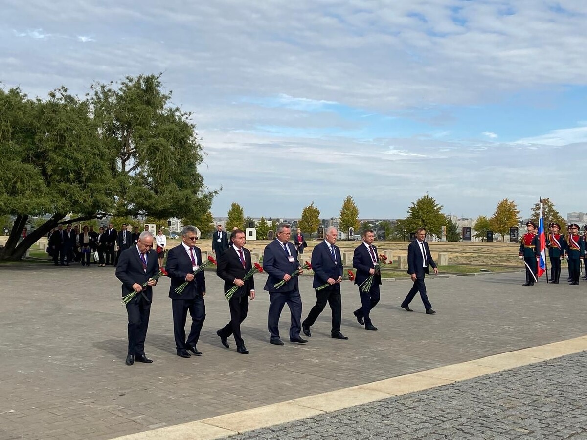В Волгограде стартовала 43-я Конференция Южно-Российской Парламентской Ассоциации. От Думы Ставрополья в мероприятиях участвуют спикер краевого парламента Николай Великдань, председатели профильных комитетов Юрий Белый и Юрий Скворцов, заместитель председателя комитета Александр Олдак и депутат Николай Кашурин. До начала официальной программы участники поднялись на Мамаев курган и посетили мемориальный комплекс «Героям Сталинградской битвы». В Зале Воинской славы делегация возложила венки и цветы к Вечному огню и могиле Маршала Советского Союза Василия Чуйкова. Парламентарии регионов-участников конференции также посетили Воинское Мемориальное кладбище, где захоронены советские воины, павшие в битве за Сталинград, и найденные позднее останки бойцов. Здесь покоятся более двух тысяч неизвестных солдат в братских могилах. На территории установлены памятные знаки российских регионов, чьи уроженцы защищали город в Великую Отечественную войну. Депутаты от Ставрополья возложили цветы к памятно