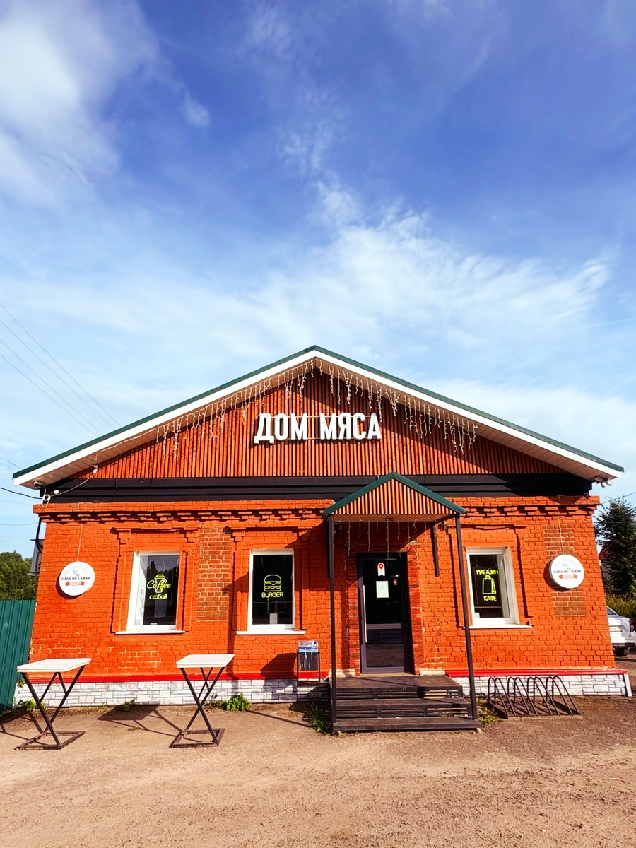 Друзья, здравствуйте! На отрезке пути из Пскова до Санкт Петербурга мы остановились перекусить в провинциальной деревне Бешкино Гдовского района, уже в знакомом нам семейном кафе "Casa De Carne", название которого переводится с испанского как "Дом мяса". Зародилось предприятие в далеком 2022 году, когда из домашнего ремесленного производства в маленьком цеху, бизнес перерос в самостоятельное заведение общественного питания. функционирующее на пару с продовольственным магазином.