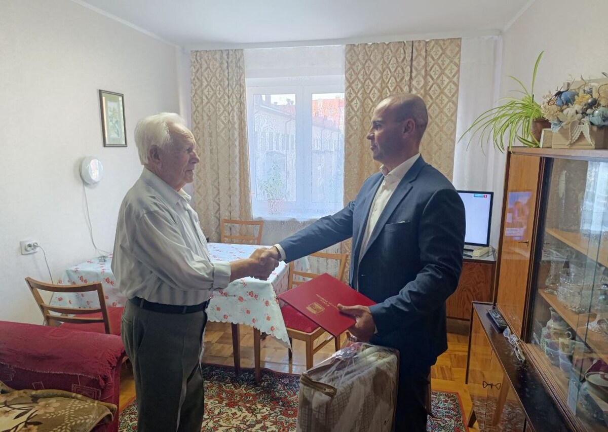 Поздравление для дорогого ветерана Руководитель управы Калининского административного округа Администрации города Тюмени Олег Савчук лично поздравил с 97-м днём рождения ветерана Великой Отечественной войны, почётного гражданина города Тюмени Андрияна Корниловича Угренинова. В тёплой и душевной атмосфере Олег Савчук выразил ему глубокую благодарность за бесценный вклад в Великую Победу и многолетний труд на благо родного города, а также передал имениннику персональные поздравления и подарок от главы города Тюмени Максима Афанасьева. Общаясь с ветераном, Олег Савчук отметил его необычайную бодрость духа и ясность ума, пожелал крепкого здоровья, благополучия и долгих лет жизни в окружении внимания и заботы близких. Именинник поблагодарил за визит и внимание со стороны городских властей и поделился воспоминаниями из своей жизни.