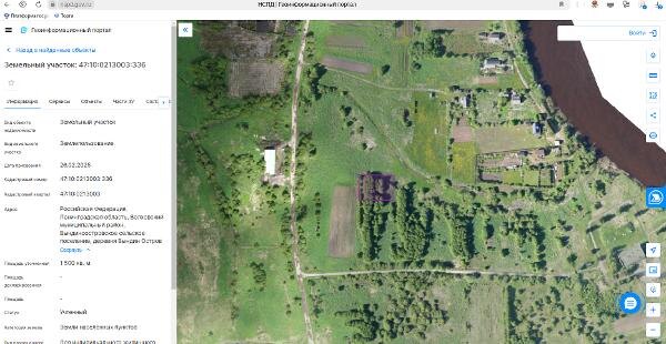 Название: Земельный участок с кадастровым номером 47:10:0213003:336 площадью 1500 кв.м, разрешенное использование – для индивидуального