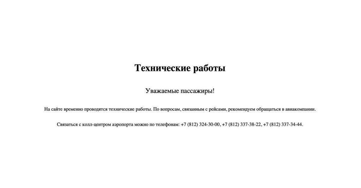 Сайт аэропорта «Пулково» взломали, его работа ограничена Сайт петербургского аэропорта «Пулково» взломали. На данный момент его работа ограничена, сообщили в пресс-службе аэропорта. 💬«На сайте временно проводятся технические работы. По вопросам, связанным с рейсами, рекомендуем обращаться в авиакомпании», – сказано в сообщении на сайте. ⚪️В «Пулково» добавили, что специалисты работают над восстановлением платформы. На данный момент аэропорт работает штатно, регистрация на рейсы осуществляется в обычном режиме. 📷: Сайт аэропорта «Пулково» 📰 Подпишитесь на «Ведомости Северо-Запад»