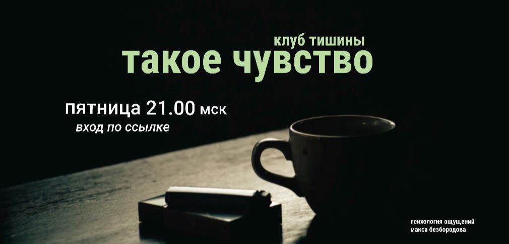 клуб “такое чувство " - для тех кто любит молчание, тишину, размышления Встречи раз в неделю, в пятницу - на платформе ВК. Вход по ссылке без регистраций. Начало в 21.00 мск Во время первого часа никто не здоровается, никто не знакомиться. Микрофоны выключены. Организатор озвучивает тему, например "Предвкушение". В течении часа участники размышляют, записывают, зарисовывают - кому как удобно. Если человек опоздал - тема в чате. По истечении часа организатор завершает встречу без подведения итогов. Второй час для тех кто хочет поделиться своими мыслями или просто посидеть и послушать. Не говорим о болезнях, конфликтах, войнах, политике, религиях, финансах, о своих и чужих проблемах. Разговор о чувствах и ощущениях. Участники встречи могут не представляться и не говорить о своем статусе, семейном положении, профессии. Достаточно назвать имя. Клуб не объединяет участников, не создаёт группу единомышленников, не формирует постоянный состав. Цель клуба - атмосфера темы на каждо