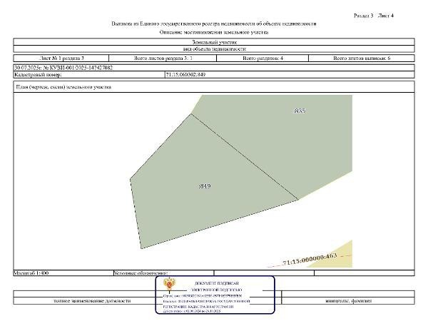 Название: Земельный участок с кадастровым номером 71:15:060302:849, расположенный на землях населенных пунктов, местоположение: Российская