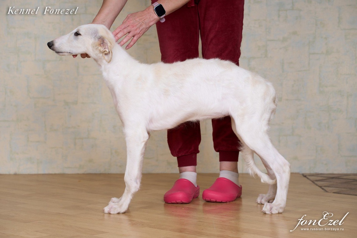 Щенок русская борзая девочка 3 месяца в поисках родителей ! Крупный щенок , с прочным верхом по типу напоминает свою тетю ( Fonezel Russkaya Krasavitsa Devitsa много фото есть как пример в взрослом возрасте ) . Щенок имеет правильный прикус , длинный хвост , хорошо опущенная грудь по возрасту , прочный постав конечностей . Очень ориентирована на общение с человеком . Хотелось бы активные ручки для девочки ! Fonezel Kadril Letnego Utra " К " помет 08.06.2025 папа ( Fonezel Renessans Russkoe Zoloto & мама Fonezel Ivolga Shalunya ) И у папы и у мамы это уже 2 помет можно увидеть какие щенки уже выросли Вопросы по щенкам в ЛС