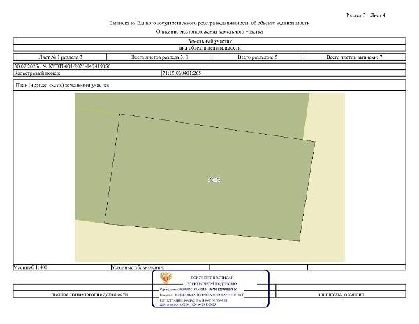 Название: Земельный участок с кадастровым номером 71:15:060401:265, расположенный на землях населенных пунктов, местоположение: Российская