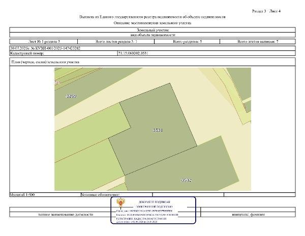 Название: Земельный участок с кадастровым номером 71:15:060202:3531, расположенный на землях населенных пунктов, местоположение: Российская