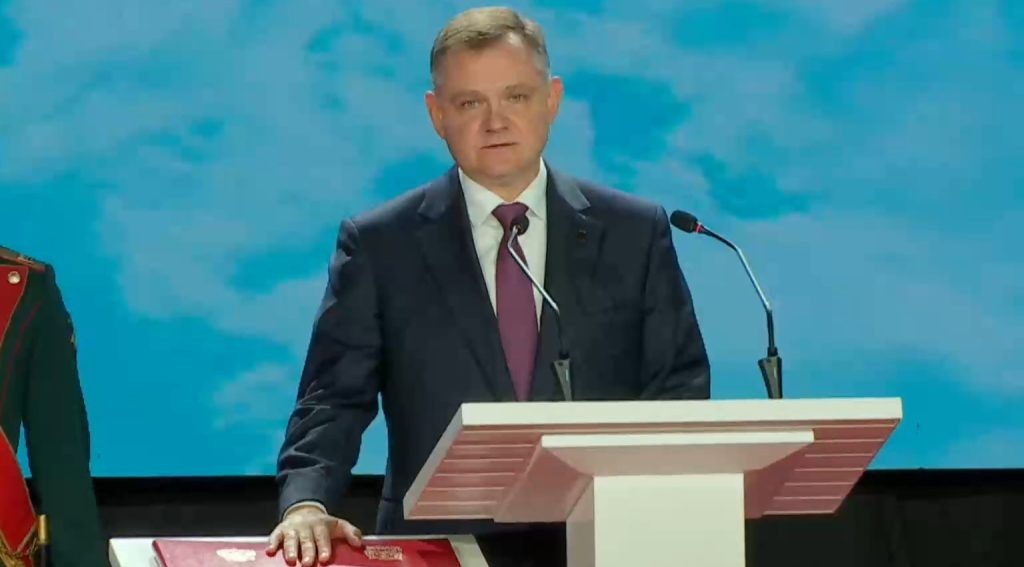 Более тысячи представителей власти, бизнеса и общественности собрались сегодня в ростовском «ДонЭкспоцентре» на церемонию инаугурации нового губернатора Ростовской области Юрия Слюсаря. Мероприятие ознаменовало официальное начало его пятилетнего срока руководства регионом после убедительной победы на выборах. Председатель облизбиркома Андрей Буров вручил Слюсарю удостоверение избранного губернатора. Новый глава региона принёс присягу, текст которой закреплён в Уставе области: «Клянусь при осуществлении полномочий губернатора Ростовской области соблюдать Конституцию Российской Федерации и федеральное законодательство, Устав Ростовской области и областные законы, способствовать защите прав и свобод человека и гражданина, процветанию Ростовской области, верно служить народу». После принятия присяги Слюсарь подписал указ о вступлении в должность. Председатель Законодательного Собрания Александр Ищенко вручил ему официальный знак Губернатора Ростовской области. В завершение церемонии были з