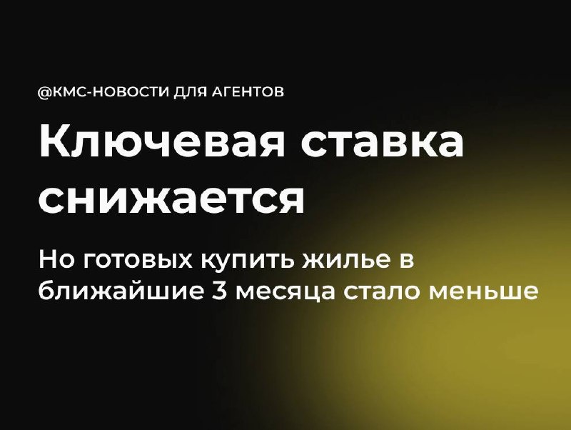По опросу IRN доля желающих упала с 13,1% до 9,1%. ⚠️Почему так? - Психология: при росте ставок люди торопятся брать кредиты, при их снижении ждут ещё большего падения. - Депозиты остаются выгоднее аренды и продолжают удерживать деньги вне рынка жилья. - Ипотека всё ещё дорогая на фоне высоких цен и экономической неопределённости. - Усталость от долгого ожидания: снижение началось, но идёт медленно, и откладывавшие покупку не видят причин возвращаться. ⚡️Итог Большинство пока наблюдают за рынком и не спешат покупать жильё. КМС - НОВОСТИ ДЛЯ АГЕНТОВ