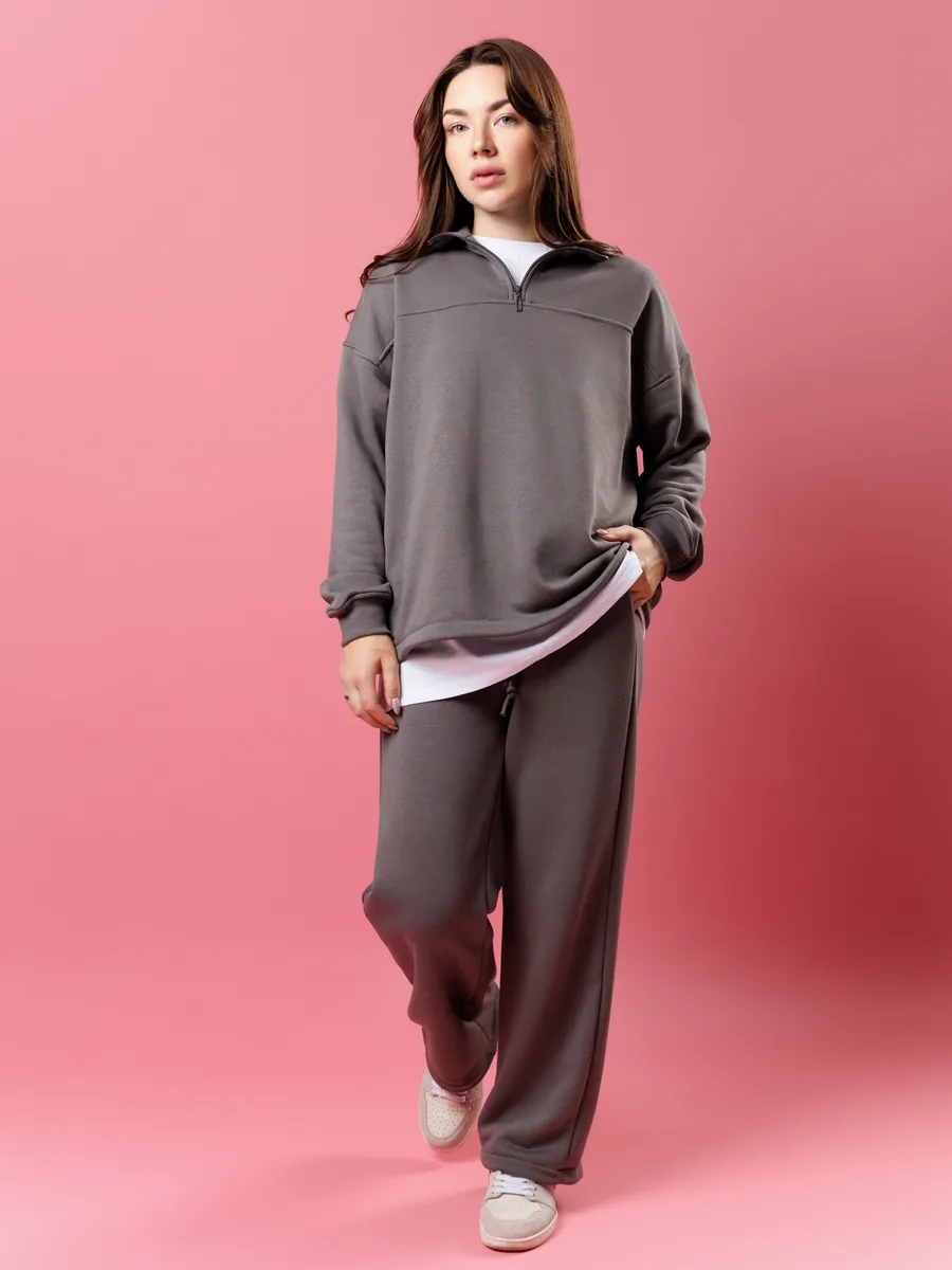 - Модель: свитшот полузип + прямые брюки, без утеплителя
