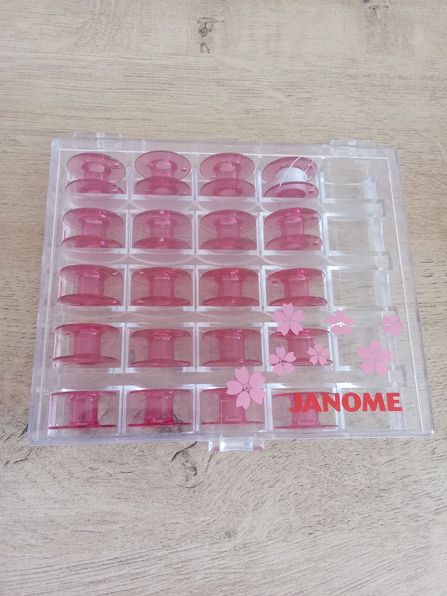 Какой замечательный футляр у Janome. Но , даже из футляра, шпульки умудряются исчезнуть в неизвестном направлении. Да, и с течением времени , они становятся хрупкими и крошатся. Их запасы приходится все время пополнять.
