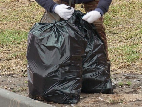 Сотрудники администрации Кировского округа вышли на субботник. Мужчины навели порядок в роще, а женщины собирали мусор по улицам города.