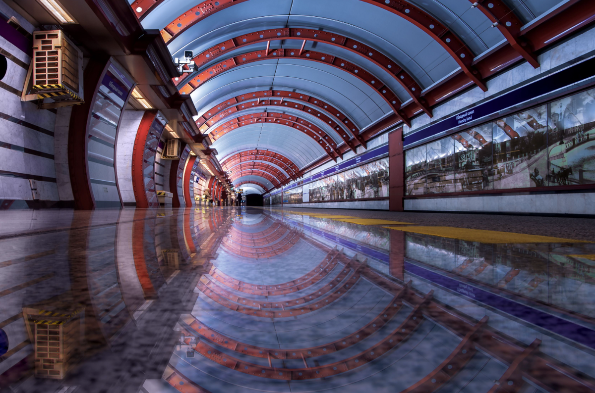 Смотрите, вот она! Одна из самых недооцененных станций питерского метро, которая точно заслуживает внимания! Никакой рекламы, зато 360 метров настоящего фотоискусства! Эта станция — как тот тихий парень на вечеринке, который на самом деле очень крут, но никому нет дела! Или как Питер Паркер без костюма Человека-паука! Нет, ну реально: на станции все стоят и тупят в телефоны, не замечая красоту вокруг! А тут аж 360 метров стеклокерамических панно с историей города — фабрики, мосты, церкви — и ни грамма рекламы, чтобы не испортить вид! Всё перетекает друг в друга, как бы переплетая разные события и локации, прошлое и настоящее! Полированные дуги и отражения в полу создают эффект трубы, наполовину заполненной водой — чистый стимпанк под землёй! Как вы уже возможно догадались, это станция «Обводный канал», открылась она в 2010 году, и я считаю её лучшей из «новых» станций Петербурга! Что думаете? Нравится вам такая станция? Или такое себе? Давайте обсудим в комментариях! ~~~