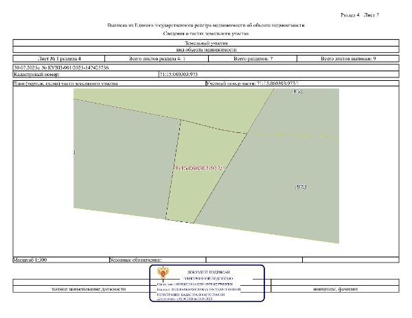 Название: Земельный участок с кадастровым номером 71:15:060303:973, расположенный на землях населенных пунктов, местоположение: Российская