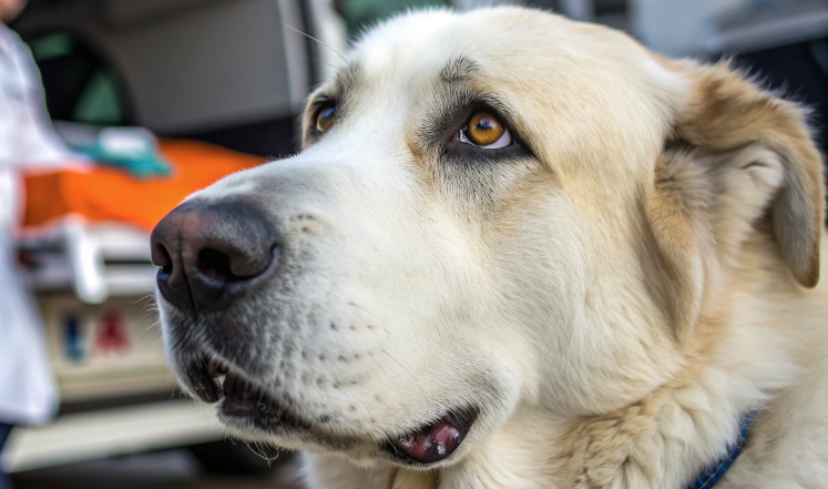 Когда принесли носилки, алабай встрепенулся. Он следил за каждым движением медиков, и в его глазах читалась тревога.