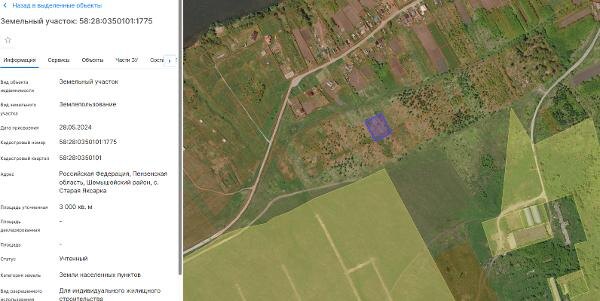 Название: Земельный участок из земель населенных пунктов с кадастровым номером 58:28:0350101:1775, общей площадью 3000 кв.м., с видом