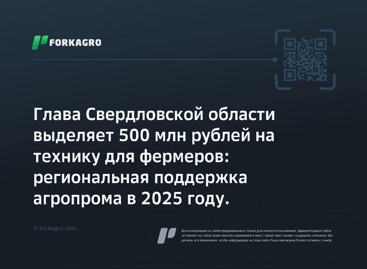 Глава Свердловской области выделяет 500 млн рублей на технику для фермеров: региональная поддержка агропрома в 2025 году.