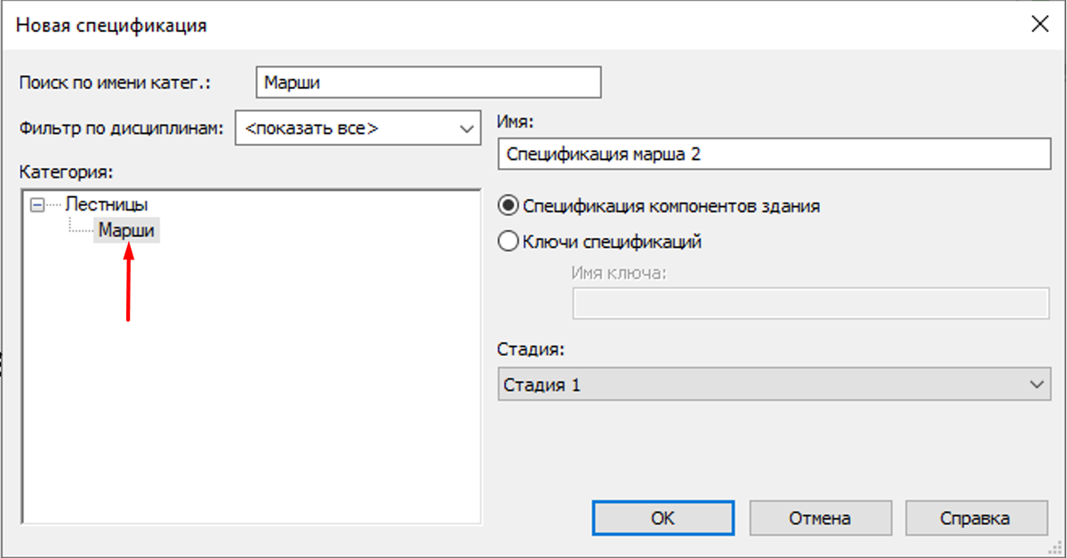 Данная методика разработана для таких случаев, когда в вашем проекте отделка лестницы выполнена внутри системного семейства монолитной лестницы и необходимо посчитать площадь отделки с максимальной точностью. Результатом не является ведомость отделки, которую мы можем вынести на листы, но посчитать точные значения и, например, передать их в сметный отдел, вполне реально. Инструкция будет разделена на 2 этапа: подсчет площади отделки маршей и подсчет площади отделки площадок. 1. Создать спецификацию маршей Чтобы создать спецификацию, переходим на вкладку «Вид» – «Создание» – «Спецификации» - «Ведомость/Спецификация», и выбираем категорию «Марши» При создании спецификации необходимо выбрать следующие параметры маршей: 2. Создать расчетные параметры: Необходимо создать 3 параметра. Для создания расчетного параметра нужно перейти на верхнюю панель «Изменить спецификацию/количества» - «Параметры» - «Расчетный»: Площадь проступей (Имя) Копировать формулу - Текущая ширина проступи*Текущая шир
