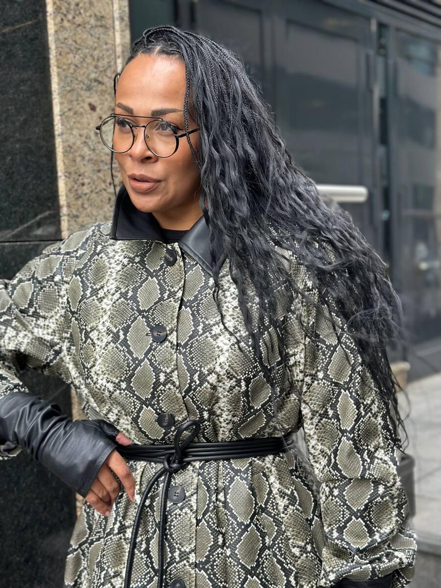 Шипящая элегантность среди бетонных джунглей Стилист Карина Баррера выбрала на осень гипнотический кожаный плащ КИНСКИ из коллекции DIVNO FM — один из главных трендов сезона. Карина дополнила образ поясом-шнуром, кожаными перчатками в тон воротнику и стильными туфлями