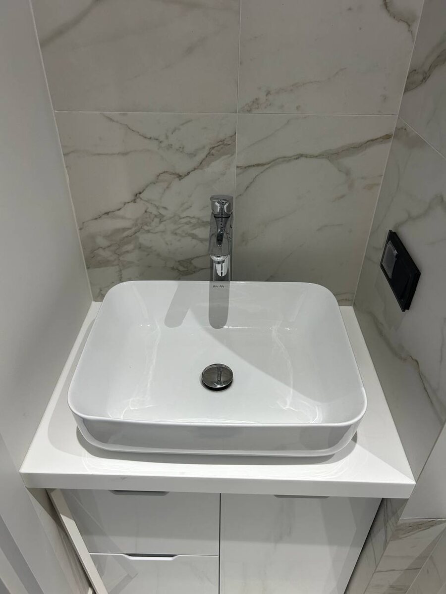 Решения от застройщика Я обожаю, что застройщики не дают закисать мозгам дизайнеров. 😁🤪😁🤪 Конечно, если я бы делала ремонт здесь, я никогда не поставила бы раковину на такую маленькую столешницу. Сюда нужна встроенная или полувстроенная раковина, чтобы столешницей можно было пользоваться. Но имеем, что имеем. Понятно, что крашеную стену слева надо обязательно покрывать специальным защитным лаком, чтобы отталкивала воду. Но есть и другая проблемка. На столешнице должны стоять всякие баночки-скляночки. Самый минимум это дозатор для мыла, стаканчик для щеток. Плюс точно могут стоять еще банки типа пены для бритья и подобное. Задачка: Как это разместить, чтобы этим было удобно пользоваться с учетом высоты раковины??? Самый простой вариант - искать высокий дозатор для мыла и стакан. Еще думаю, может есть какие-то подставки для столешниц около раковин, смотрю маркет-плейсы и каналы организаторов пространств. Может у вас идеи есть?! Буду признательна за свежие мысли! #чкалов
