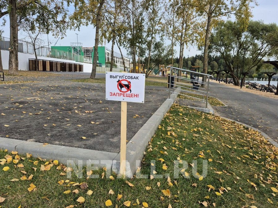 Фотофакт: в зоне отдыха у Большого городского пруда установили таблички «Выгул собак запрещен