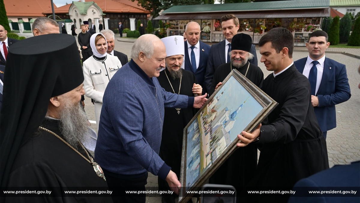 Лукашенко в Жировичском монастыре подарили праздничную картину