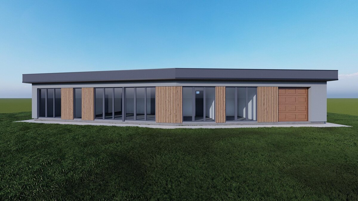 - Современный фасад сочетает штукатурку светлых тонов с серыми акцентами и элегантными вставками планкена