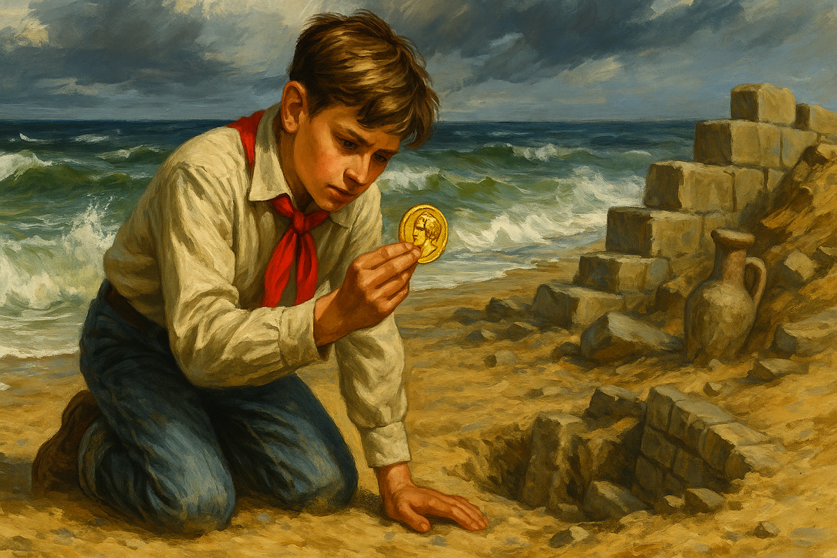 В 1981 году, когда Крым ещё был тихим уголком СССР, а летом здесь пахло черешней, морем и советскими духами «Красная Москва», 14-летний школьник Алексей Куликов гулял по пляжу недалеко от села Заветное. Он был обычным пионером — не отличником, не хулиганом, просто любознательным мальчишкой, которому нравилось ковыряться в песке после шторма. Кто-то искал ракушки, кто-то бутылочные крышки, а он — монетки и всякую древность. Знаете, такая себе «копательная» романтика. В тот день море бушевало не по-детски. Вода вырвала у берега приличный кусок суши, оголив странные камни и какие-то обломки. Алексей, вооружённый своей внимательностью и пытливостью, заметил среди песка блеск. Подумал — пуговица. Потёр пальцем — золотая монета. И не абы какая, а с профилем мужчины в лавровом венке. С этого момента началась история, которая поменяла всё: школьные каникулы, карьеру, а заодно и отечественную археологию. Летом того же года он нашёл ещё 154 монеты. Золотая — одна, серебряных — шесть, остальные б