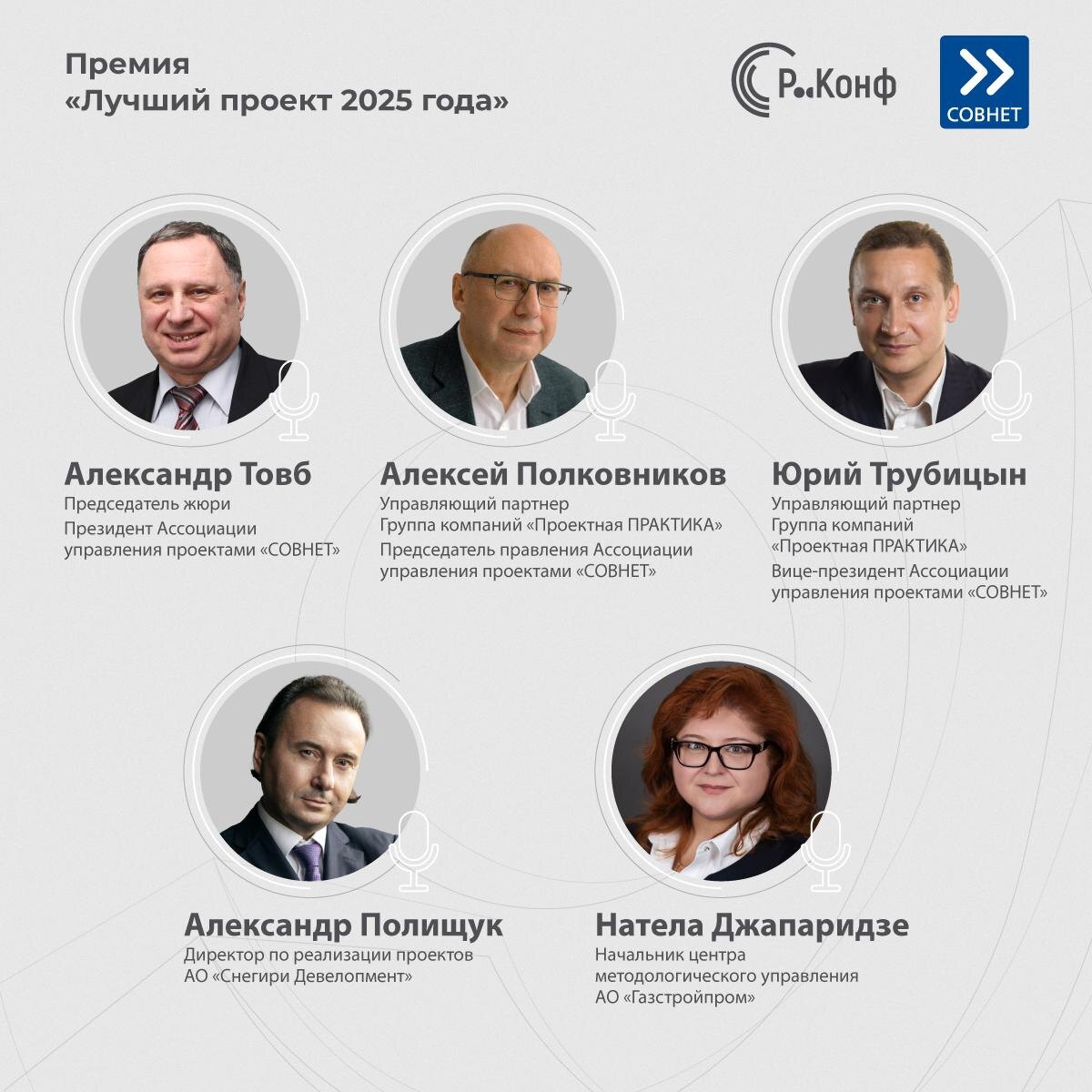 🏆Встречайте звёздное жюри премии «Лучший проект 2025 года» Это не просто конкурс — это признание лучших проектов, команд и лидеров индустрии, которые двигают рынок вперёд. В цифрах: 🏆 3 номинации 🌍 100+ участников 📈 Признание на международном уровне ✅ СОСТАВ ЖЮРИ КОНКУРСА✅ - Александр Товб, «СОВНЕТ» - Алексей Полковников, ГК «Проектная ПРАКТИКА» - Юрий Трубицын, ГК «Проектная ПРАКТИКА» - Александр Полищук, АО «Снегири Девелопмент» - Натела Джапаридзе, АО «Газстройпром» - Петр Пономарев, АО «Консист ОС» - Вениамин Кизеев, ГК WINbd - Кирилл Дмитриев, конкурс «Проектный руководитель» - Андрей Щетинин, “СОВНЕТ” - Мария Романова, ЦБ РФ - Валентин Кушнаренко, УЦСБ - Григорий Ципес, ГК IBS - Игорь Гундарев, АО «Россельхозбанк» - Артем Чапцов, «СОВНЕТ» - Александр Калтыков, «СОВНЕТ» - Алексей Субботин, консультант по управлению - Олег Тумасов, журнал «Управление Проектами» 🚀 К участию приглашаются компании, руководители проектов и программ, проектные офисы и владельцы портфелей. 👉У