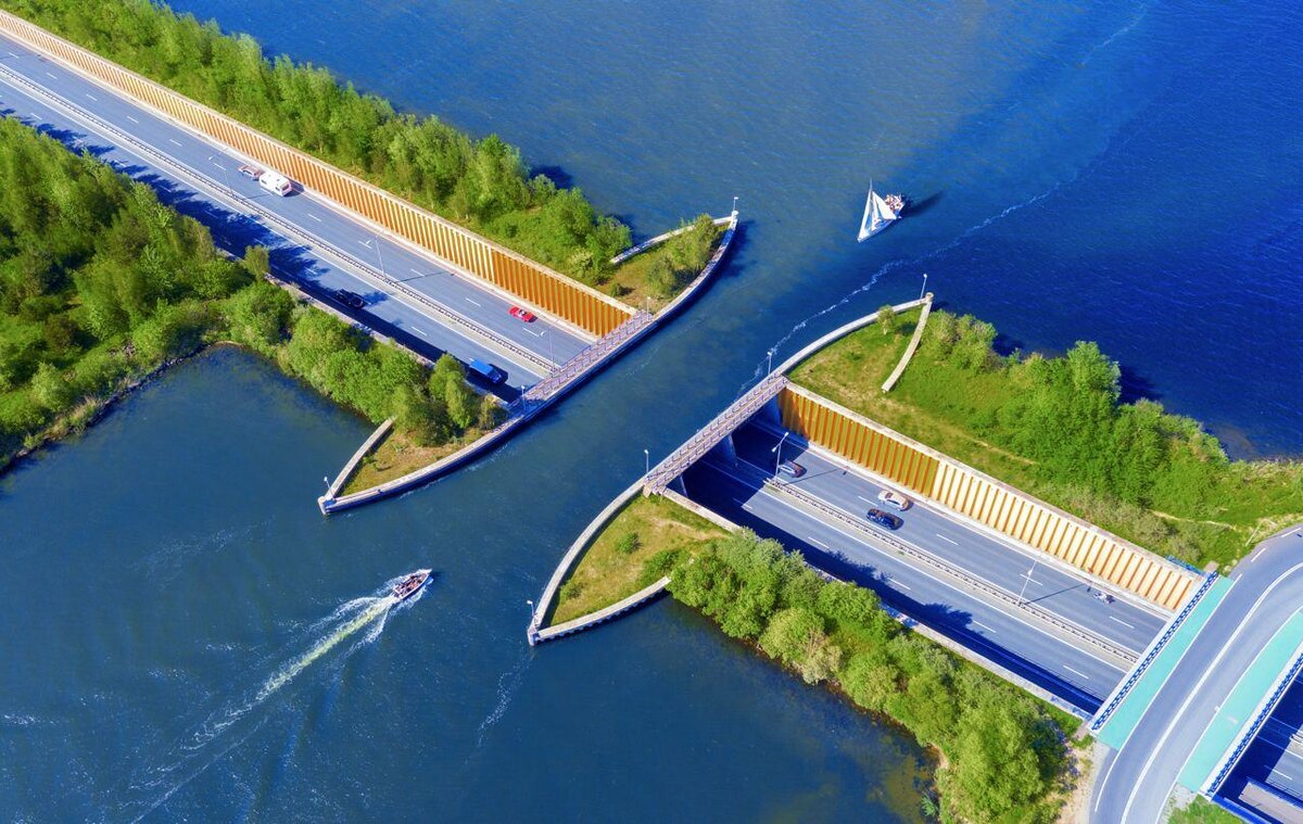 🇳🇱 А вы знали, что в Нидерландах есть «мост наоборот»? Он называется Aquaduct Veluwemeer и, чисто технически, это — водный мост через дорогу, соединяющую материковые Нидерланды с Флеволандом, крупнейшим искусственным островом в мире. Власти Нидерландов изначально планировали построить длинный мост для машин через всё озеро, но оказалось, что водный акведук — удобнее и дешевле. Бонусом: не нужно запариваться с водными переправами и блокировать движение на оживлённой трассе. Кстати, возле моста есть четыре мини-смотровых, чтобы любоваться озером и глазеть на проплывающие мимо корабли.