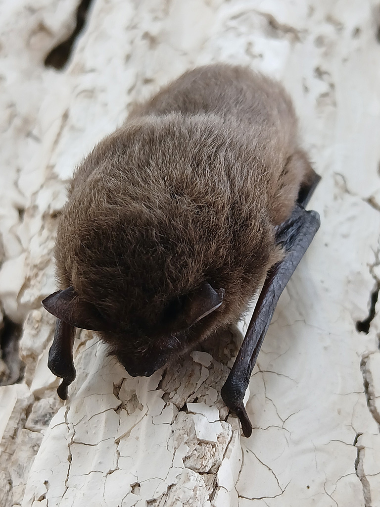 На работу иду — на дереве, прямо вот низко–низко сидит животинка Я в летучих мышах не так чтоб разбираюсь, так что принадлежность к виду самостоятельно определить не берусь - но знающие люди сказали, что это краснокнижный лесной нетопырь Необычный зверь. Не сказать чтоб красавец, но... Шерстка прямо бархатная Хотел его перенести куда–нибудь — собаки стаей бегают, как бы не