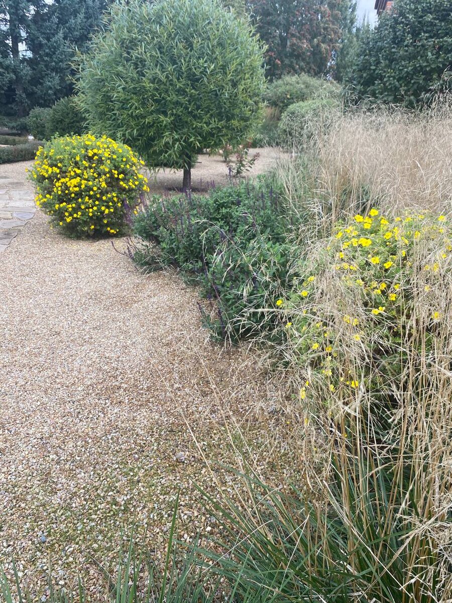Знаю, что многие дизайнеры не любят работать с этим кустарником, я же люблю лапчатку за ее длительное цветение, форму листа, ажурность, она всегда нарядная и легкая 😉