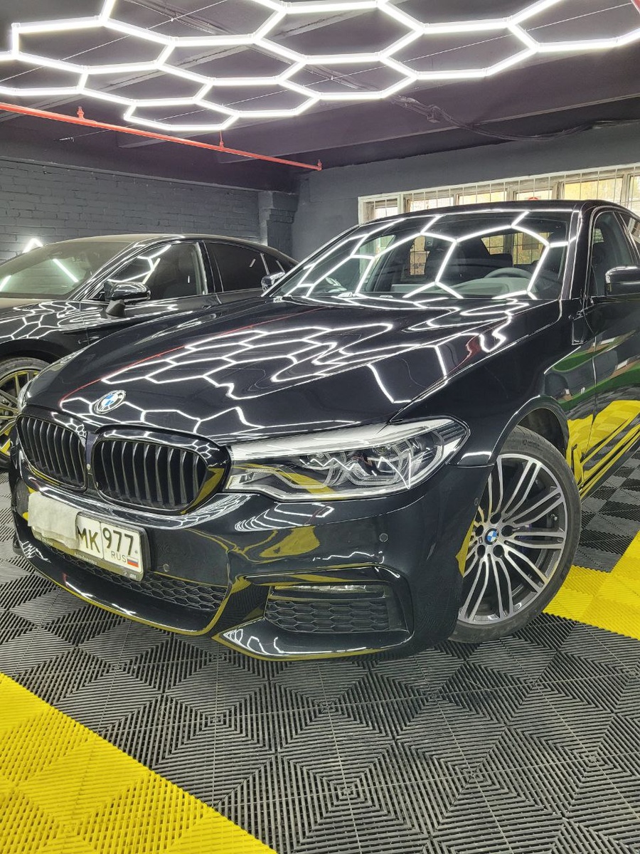 BMW 5 series Выполнены работы: ✅ Защита зон риска передней части автомобиля полиуретановой глянцевой пленкой. ✅ Защита наружных порогов полиуретановой глянцевой пленкой.