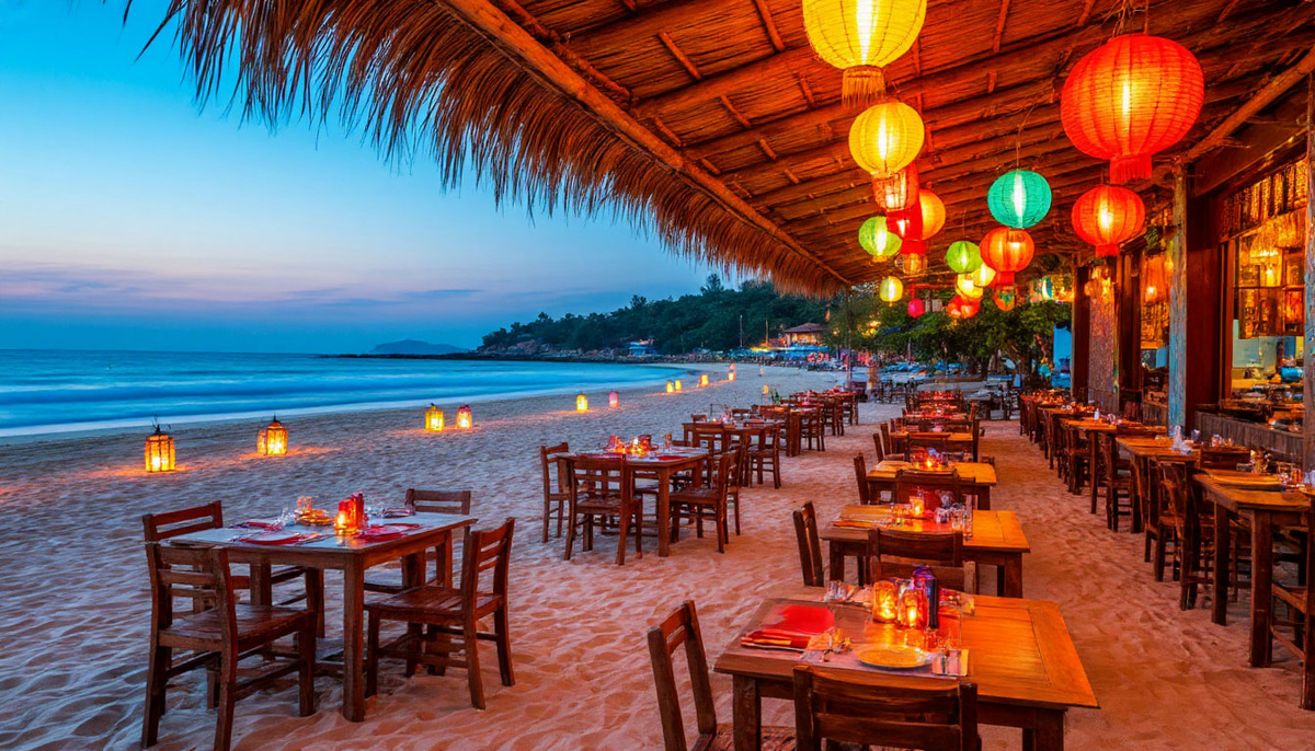 Ресторанчик с видом на море, столики на песке, пёстрые фонарики, запах соли и жареной рыбы, где-то вдали — живая музыка.