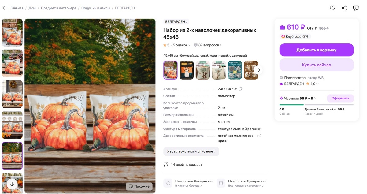 💬 Важно: я ничего не навязываю, просто делюсь личным опытом. Эта подборка - для вдохновения и хорошего настроения. Представь: дождливый вечер, чашка чая и подушки с осенним принтом на диване. Эти наволочки сразу создают атмосферу уюта. Они выполнены из приятной ткани «рогожка», а рисунок добавляет яркий акцент в комнату. Подойдут и для спальни, и для гостиной. Отличный вариант для себя или в подарок близким. Артикул: 240934225 Эта тарелка - не просто посуда, а элемент декора. Она большая, стильная и отлично подойдёт для подачи блюд, закусок или салатов. На ней даже обычный ужин будет смотреться как в ресторане. А ещё её можно спокойно ставить в микроволновку и мыть в посудомойке. Идеальный баланс красоты и практичности. Артикул: 396001645 Свечи в виде тыквы из воска - это чистая магия осени. Они не только мило смотрятся, но и создают особую атмосферу в доме. Представь, как они горят на столе во время ужина или стоят на полке как элемент декора. Плюс, в культуре тыква считается симво