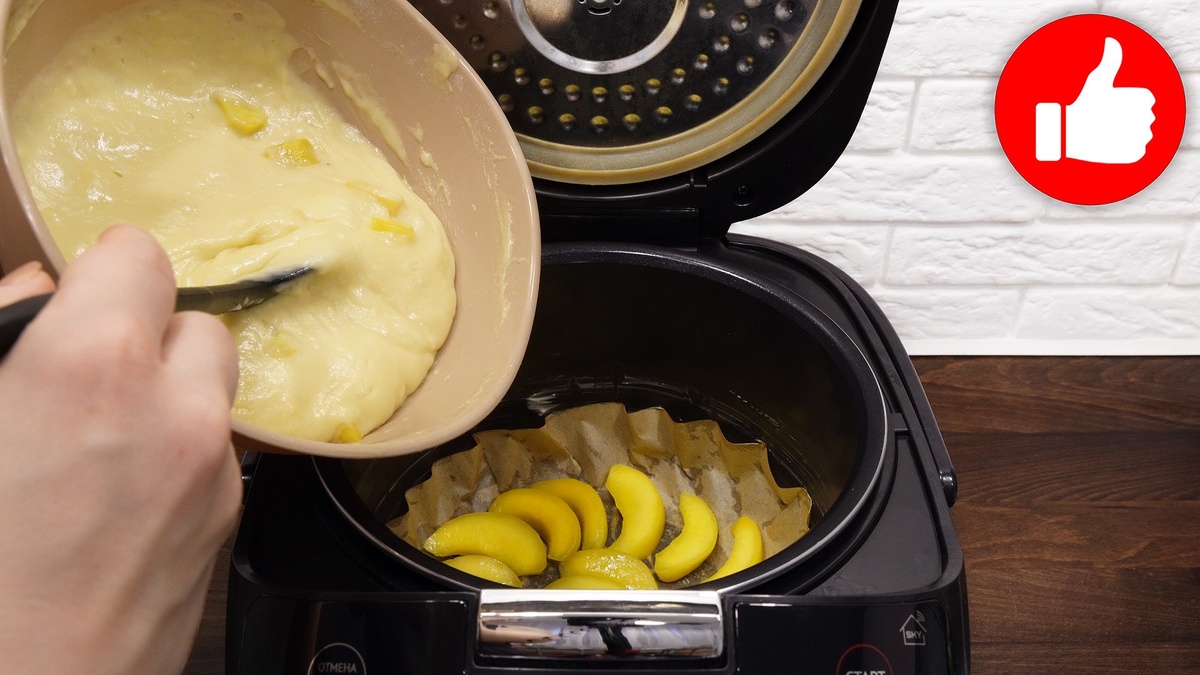 пирог - перевертыш с персиками в мультиварке, выпечка к чаю