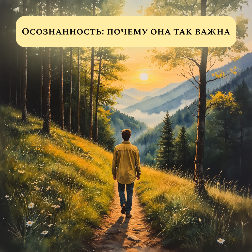 Недавно я поймала себя на том, что мы живём в "автоматическом" режиме. Сама прохожу улицы и даже не замечаю их — мысли крутятся о работе, о списке дел, о том, что нужно успеть вечером. Знакомо? Мы живём «на автомате»: завтракаем, не чувствуя вкуса кофе, слушаем близких, но в голове уже составляем план дня. В такие моменты мы теряем контакт с настоящим. А именно здесь — в «сейчас» — и есть наша жизнь. И вот тут появляется осознанность. Осознанность — это умение замечать происходящее в данный момент. Не абстрактная философия, а очень конкретный навык: чувствовать своё дыхание, слышать слова собеседника, ощущать, как солнце согревает лицо, замечать мелочи. Проще говоря, это состояние, когда вы не улетаете мыслями в прошлое или будущее, а находитесь в контакте с собой и с миром вокруг. Представьте: вы приходите домой после работы. Устали, раздражены, хочется «спрятаться». Но вдруг вы замечаете, что злость связана не с близкими, а с усталостью и голодом. Сделав паузу, вы выбираете не «сорва
