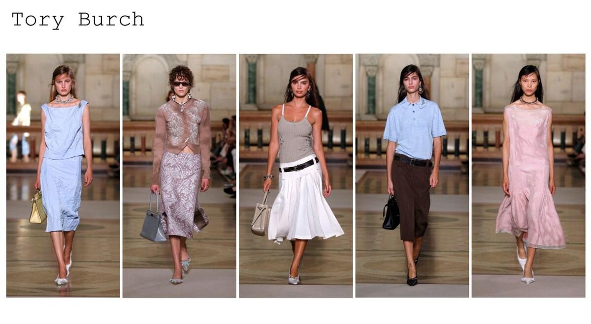 ➡️ Tory Burch отметила 21-летие бренда. Коллекция выдержана в духе 50-х, с зарождавшимися тогда элементами спортивного «ретро». Главные фавориты — топы с плиссированными миди-юбками на ремне и сумки в стиле Грейс Келли.