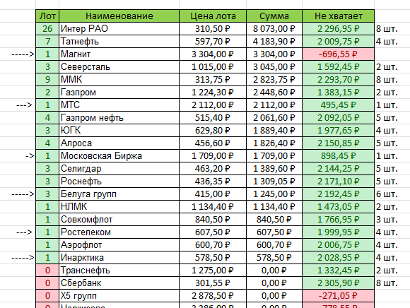 В общем, загадывать сейчас нет никакого смысла. Доживем до понедельника, я снова внесу плановые 2 500 рублей, или чуть меньше, с учетом перевнесенных сегодня 600 рублей. И уже в понедельник буду смотреть свою таблицу и принимать решение о покупках.