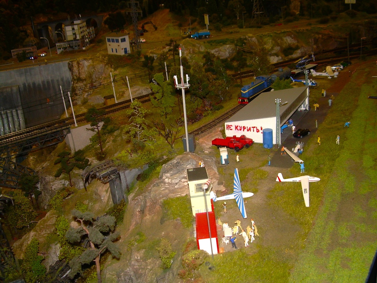 Завершаю свой обзор музея "Гранд Макет Россия" в Санкт-Петербурге. Первые статьи можно почитать в подборке об этом удивительном городе. Напомню, музей "Гранд Макет Россия" посвящен нашей необъятной стране. Здесь показаны все сферы жизни россиян - от быта до профессий и достопримечательностей. Каждая сцена продумана до мелочей. Рассматривать макет очень интересно и увлекательно. Все фото автора. На этом фото мы видим, как авиамоделисты собрались на небольшом аэродроме. Все вокруг суетятся. Идет сборка модели самолета. На заднем плане можно рассмотреть поезд и мост, который обрывается. Произошло обрушение моста. Паровоз упал в реку. Постепенно специалисты устраняют последствия ЧП. На этом фото видим, как полным ходом идет строительство автомобильного моста. Здесь можно рассмотреть бетоновоз, асфальтоукладчик и грузовую машину, которая выгружает будущий асфальт. Вокруг суетятся рабочие. На заднем плане можно рассмотреть дамбу. На этом снимке изображена Невьянская башня. Ее прототип находи
