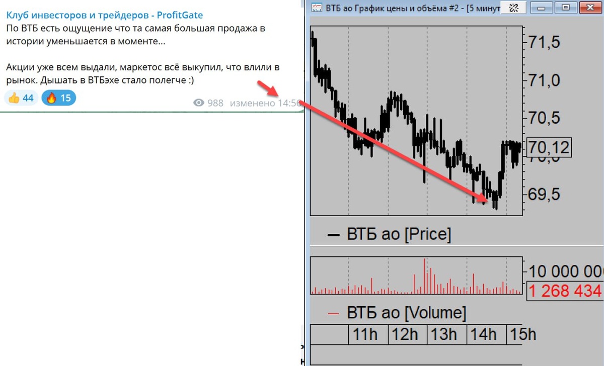 ‼️С того момента как написал на самых лоях что в ВТБ продажа падает, нас снова вынесли выше 70, откупив на процентик... Скрин из клуба вам :) В какой то момент за сегодня количество заявок на продажу было самым большим за всю историю торговли втбешки. Но всем кто на допке набрал сегодня акции поставили их. И в основном продали их уже видимо. Информацию в клубе дал на самых лоях дня. Такой бездарно проведённой допки я не видел за всю свою карьеру в 20 лет. НО ничего особо страшного у нас не происходит. Цена реально очень интересная. Возможно ещё будет какое давление когда маркетос будет обратно акции сдавать или когда по праву выкупа акции придут. Но думаю всё самое страшное позади... Теперь на что смотрим в первую очередь, это на широкий рынок...