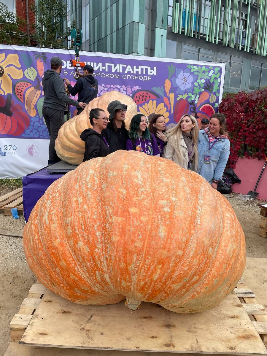 Фермер Александр Чусов в «Аптекарском огороде» обновил рекорд по тыквам-гигантам. Правда, даже так не удалось дойти до 1 000 кг — вес плода составил 969 кг.