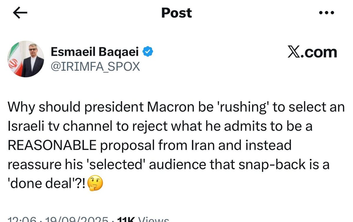🇮🇷 Iran slams Macron after his snapback comments on Israeli TV