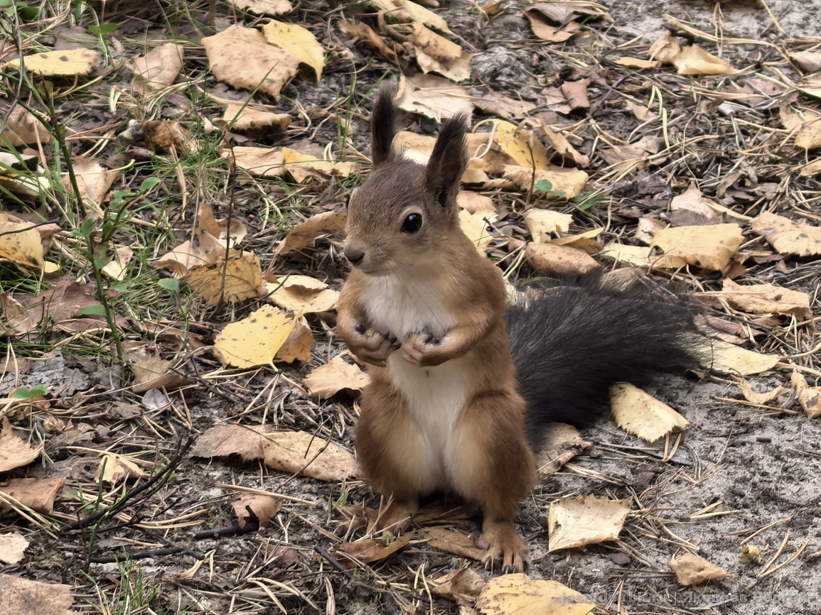 Чаще всего нам попадаются белки. На маршруте по ягринскому бору их 5, кто-то пугливый, кто-кто к осени осмелел и дергает за одежду с просьбами орехов.