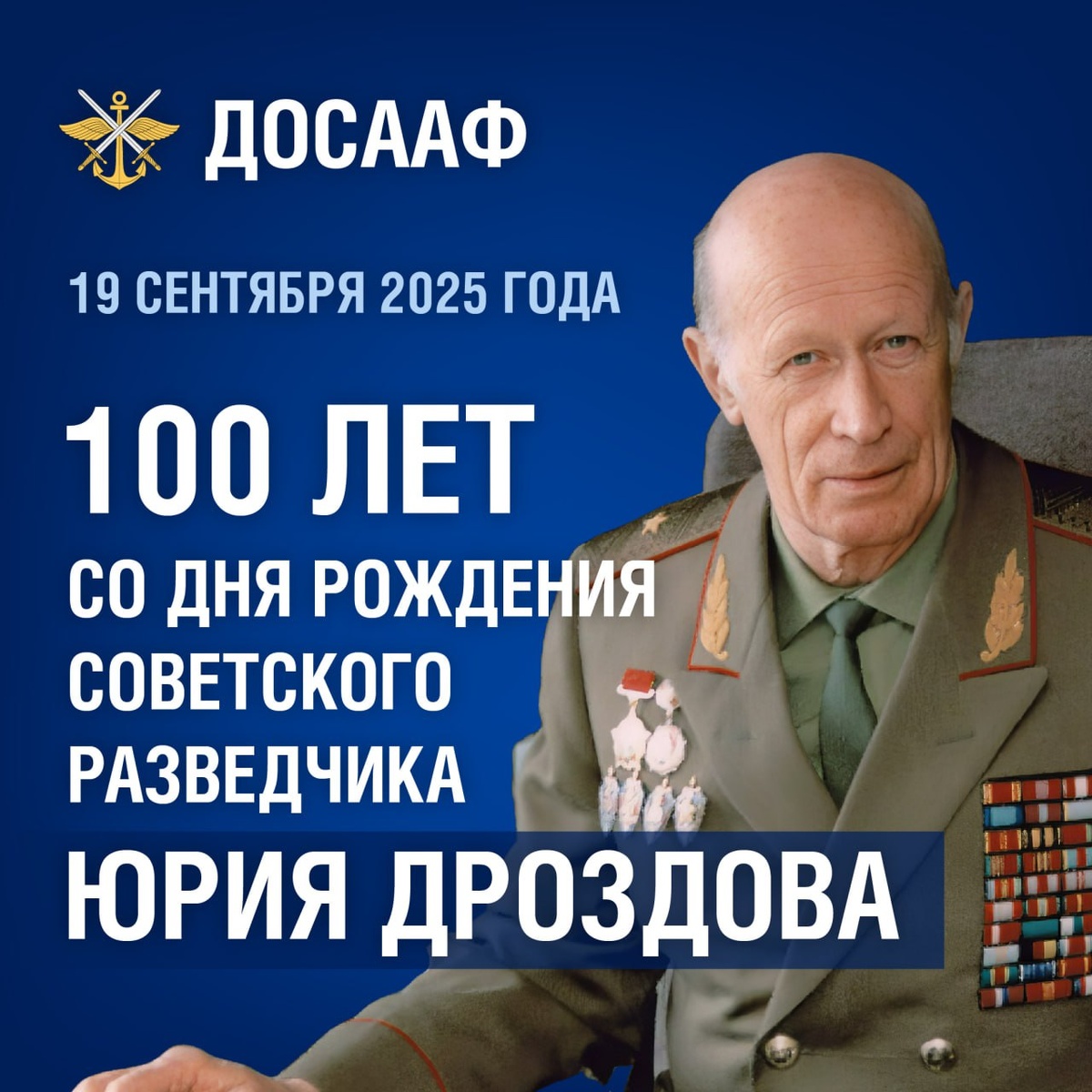 🇷🇺 100 лет со дня рождения советского разведчика Юрия Ивановича Дроздова 19 сентября 1925 года в Минске родился человек, чья жизнь стала частью истории отечественной разведки и спецслужб — Юрий Иванович Дроздов, генерал-майор, начальник нелегальной разведки КГБ СССР, основатель легендарного спецподразделения «Вымпел». Его юность пришлась на годы войны. Учёба в артиллерийской школе сменилась фронтом: в 1944-1945 гг. молодой офицер командовал огневым взводом и дошёл до Берлина в составе 3-й ударной армии 1-го Белорусского фронта. За проявленное мужество был награждён орденом Красной Звезды. После войны Юрий Иванович окончил Военный институт иностранных языков, свободно владел немецким, английским, испанским. В 1957 году его направили в Берлин, где он участвовал в одной из самых известных операций холодной войны — обмене разведчика Рудольфа Абеля на американского пилота Фрэнсиса Пауэрса. Позже был резидентом КГБ в Китае в период «культурной революции», а затем — в США, под прикрытием